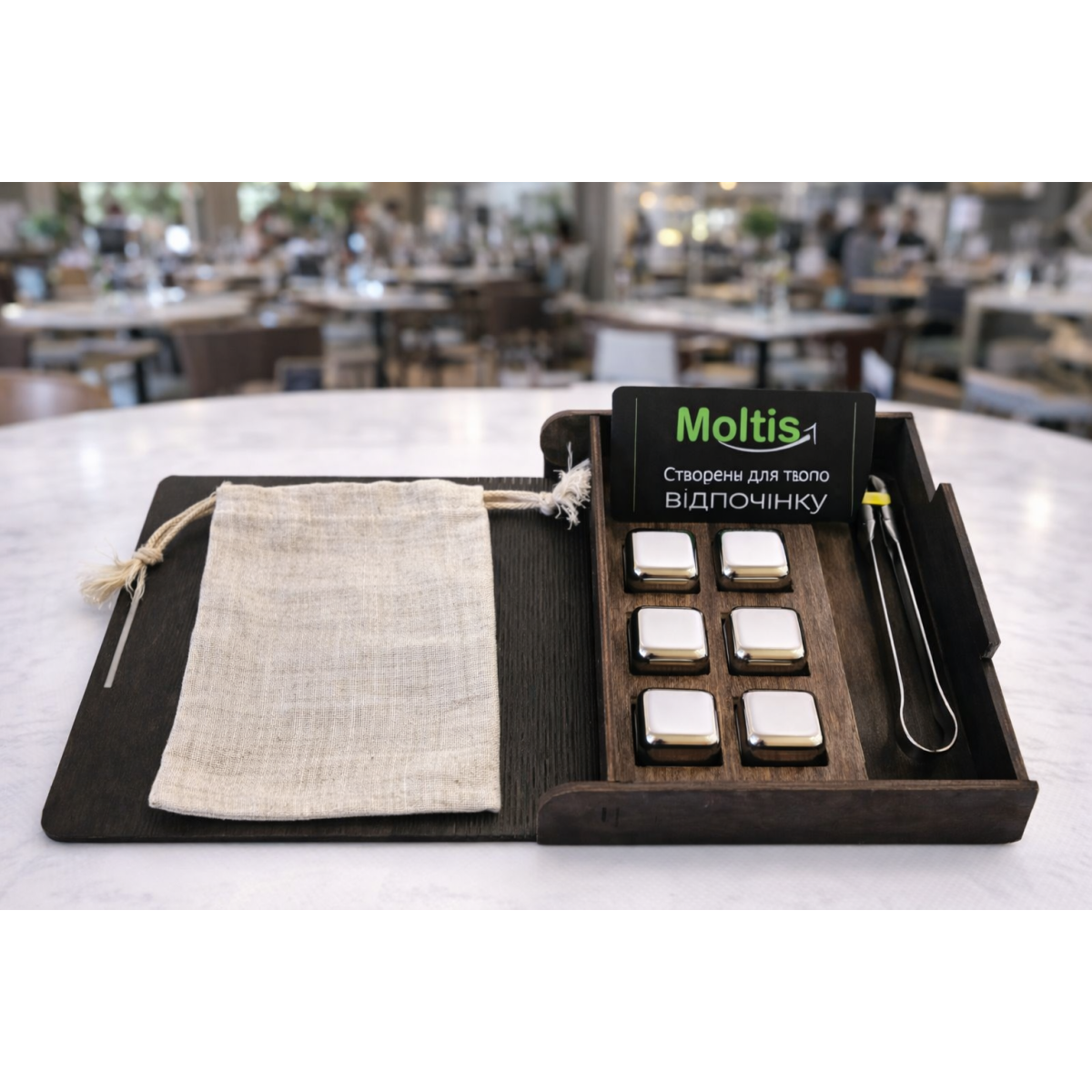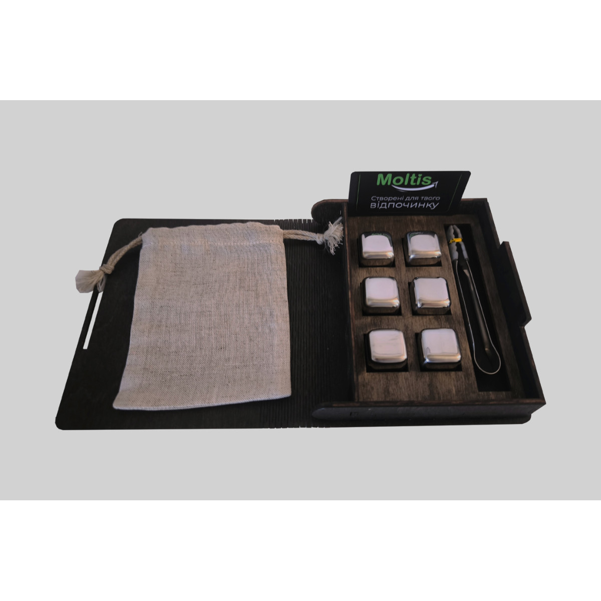 Кубики для віскі Moltis Relax Whiskey Stones Original Wood 6 шт з металу у серебряном цвете MBS - 10500