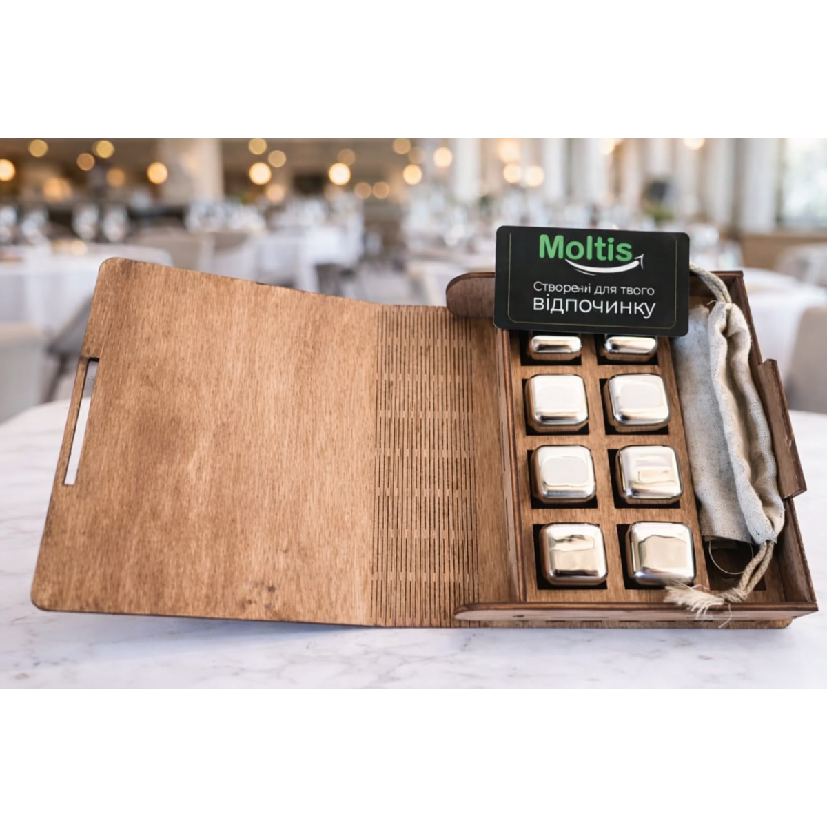 Кубики для віскі Moltis Relax Whiskey Stones Original Wood 8 шт з металу у срібному кольорі MBS-10503