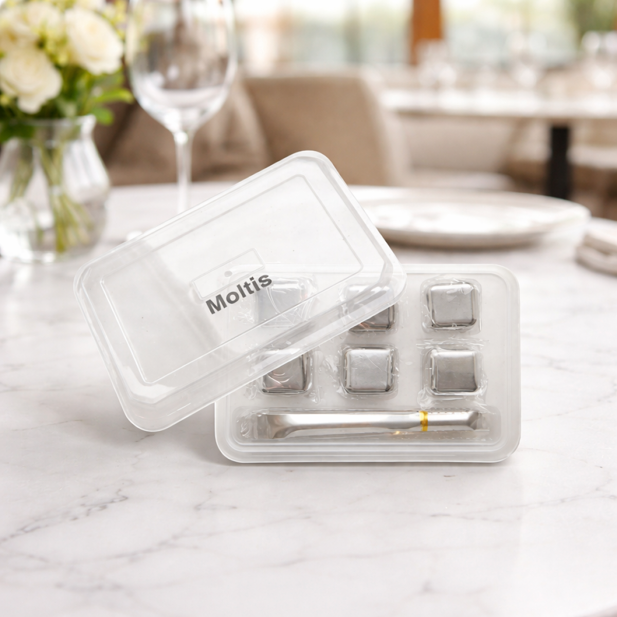 Сталеві кубики не впливають на смак напою, підійдуть для охолодження води, пива, вина, чаю, лимонаду, віскі.