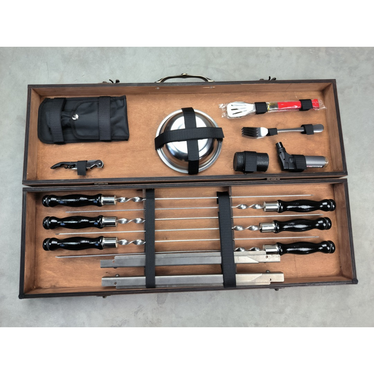 Цей набір постачається у стильній та надійній дерев'яній коробці, що робить його практичним і водночас елегантним подарунком.
