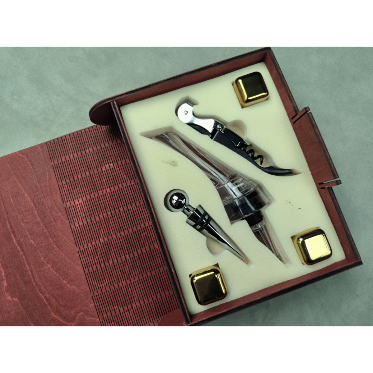 Ексклюзивний дизайн: Дерев'яна упаковка у вигляді книги додає набору естетичності та статусності.